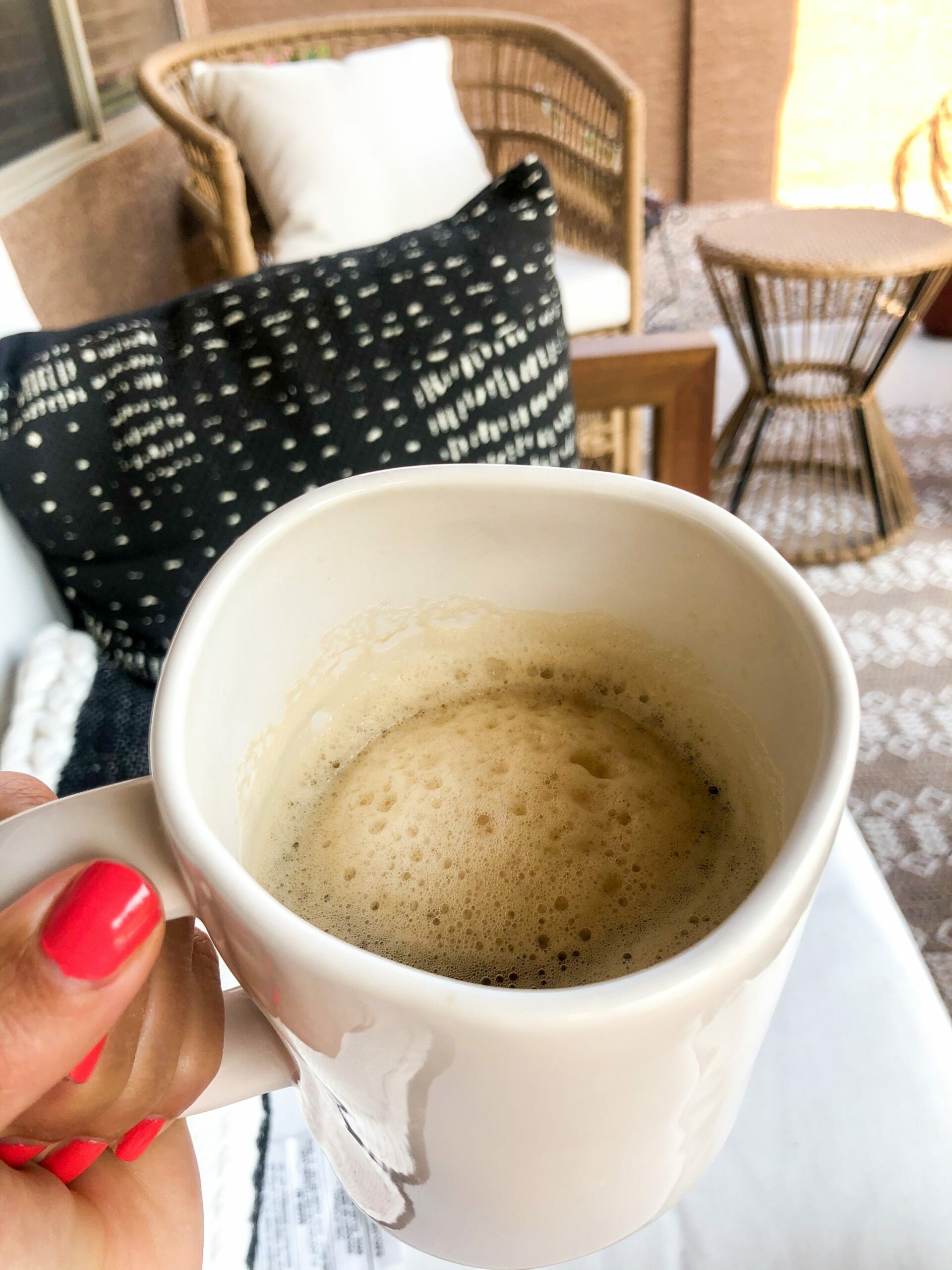 (Decaf coffee with monk fruit, almond milk, and a scoop of Vital Proteins collagen)