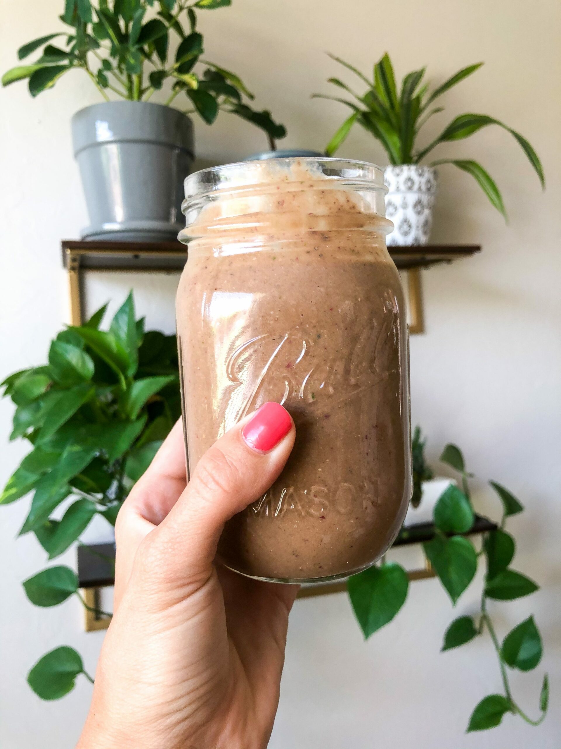 11:30am: I have official breakfast while I make the girls lunch. This is a smoothie with the girls’ leftover breakfast strawberries (I hate tossing fruit, so I just put their leftover breakfast fruit in the fridge until I make a smoothie at some point during the day), almond milk, chia sees, almond butter, frozen cauliflower rice (you can’t taste it but it gives it a great texture and nutrient boost), cocoa powder, maca, spinach, Truvani protein powder, and monk fruit.