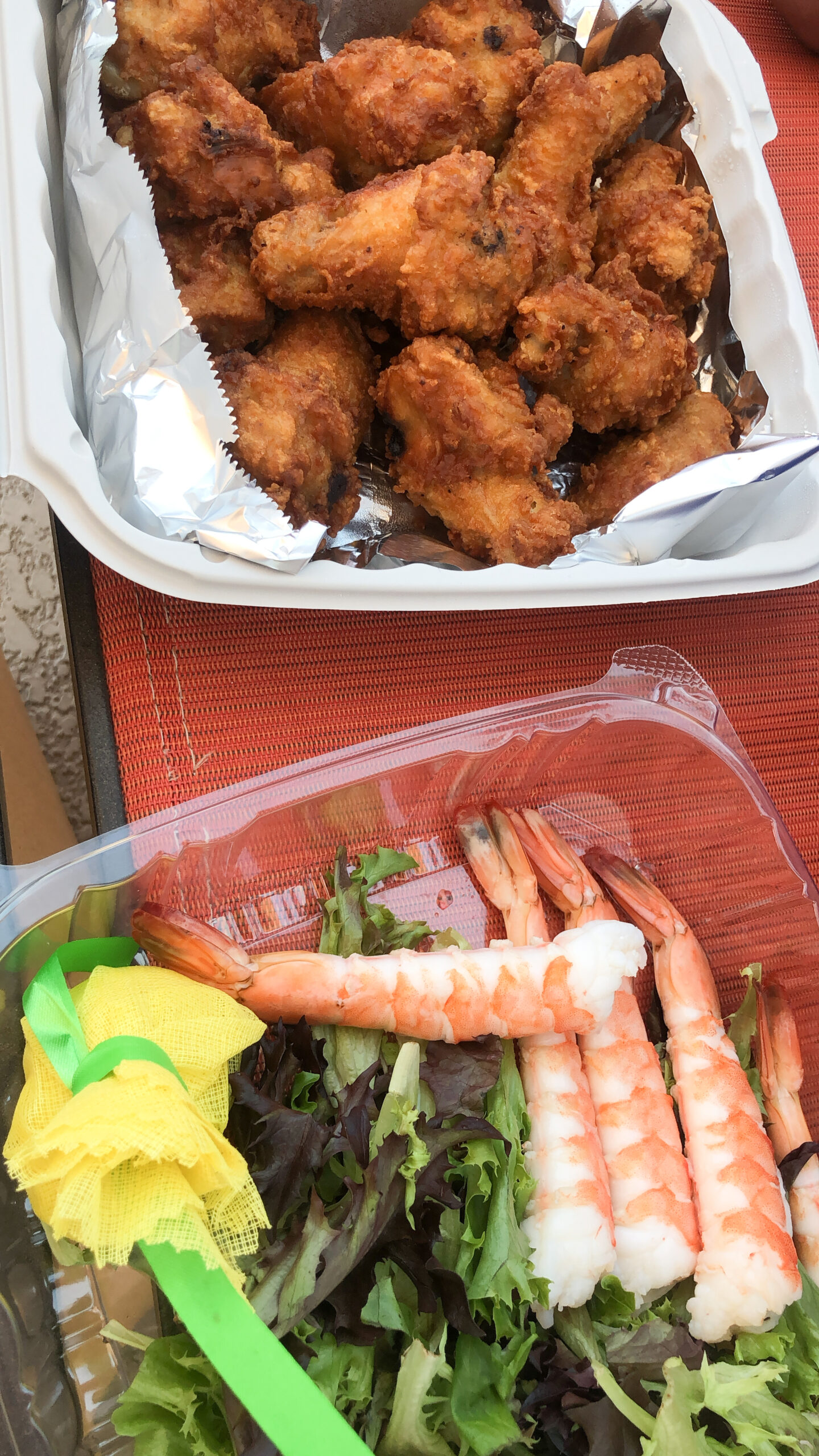 3:30pm: We’re at the pool for a few hours and since I haven’t officially had lunch yet, I’m getting pretty snacky and so are the girls. They split a cheeseburger with fries, while we all share chicken wings and jumbo shrimp cocktail. (The shrimp are the size of my hand and SO good.)