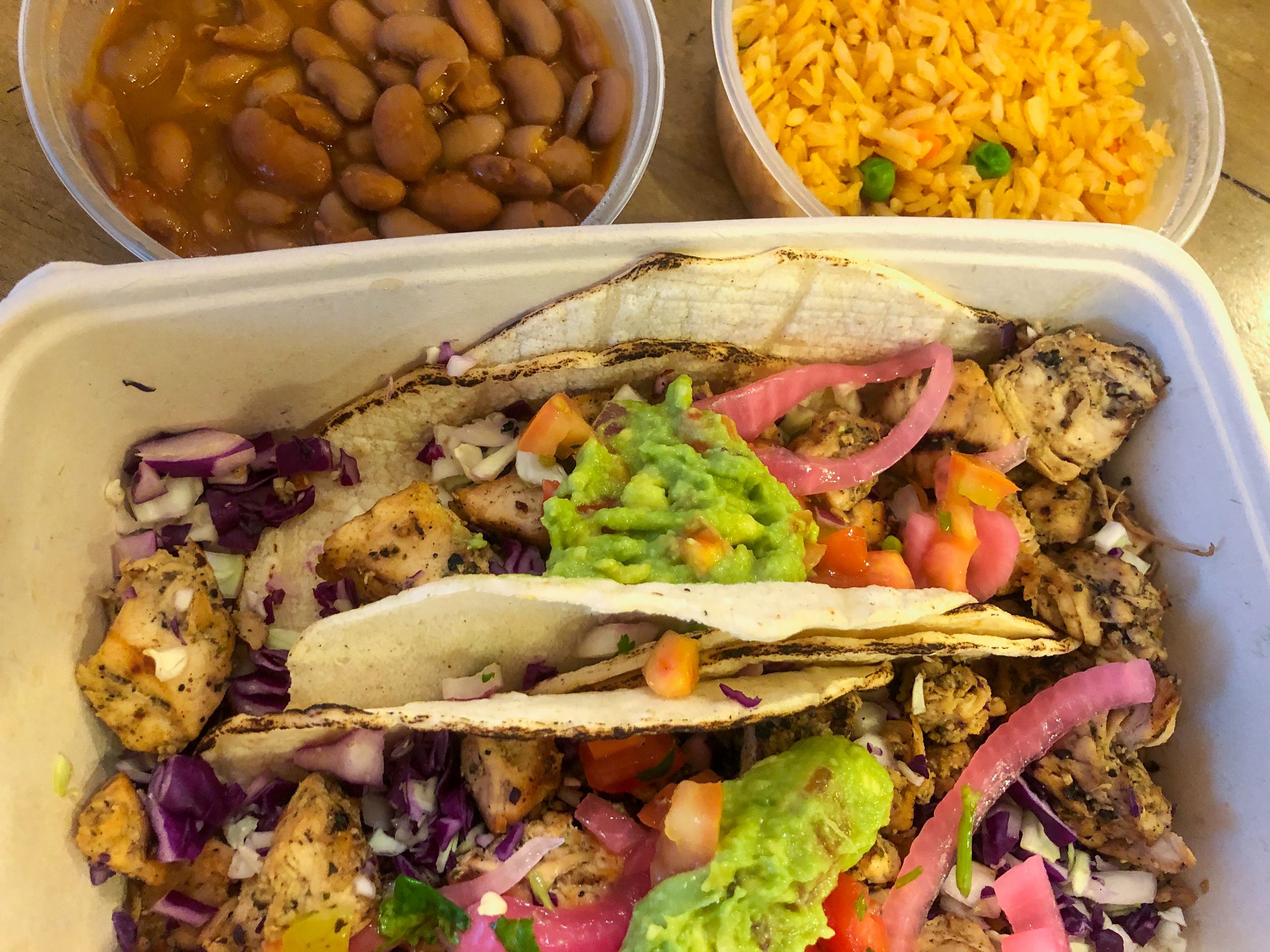 6:00pm: Mexican food takeout from El Charro. I order the chicken tacos on corn tortillas with rice and beans.